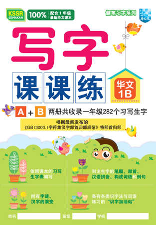 《写字课课练》分为 A、B两册,是配合《一年级华文课本》的指定生字编写,并且列出有关生字的笔顺和部首。为了加强学生对有关生字的认识和印象,我们也同时列出有关生字的汉语拼音、构成词语和例句,附加字谜和汉字的演变。另外,我们在精心设计的识字加油站里穿插各类识字法与词语练习,有助于学生掌握认字和写字的技能。-100%配合1年级最新华文课本-依照课本的习写生字表编写-附有字谜、汉字的演变-列出生字的笔顺、部首、汉语拼音、构成词语和例句-备有各类识字法与词语练习的识字加油站